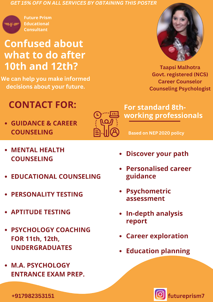 Our services are ideal for: Students (school & college level) Parents seeking guidance for their children Working professionals at a career crossroads Families and couples needing psychological support